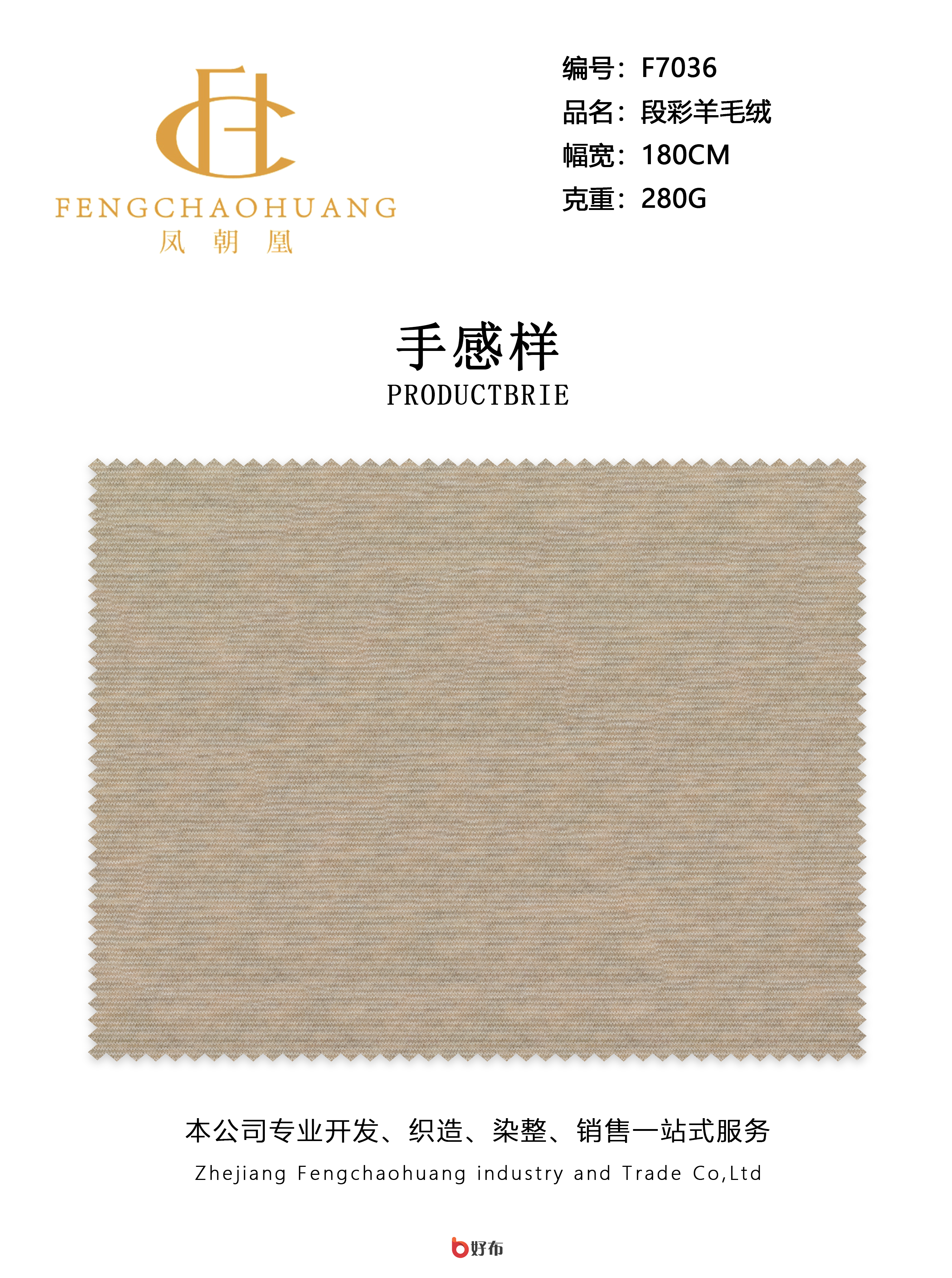 浙江凤朝凰工贸有限责任公司公司成立于2015年,注册资本1000万元人民币。集针织、染色、印花、后整理于一体,提供生产、销售、自营进出口一条龙服务,省去中间环节,源头厂家确保性价比