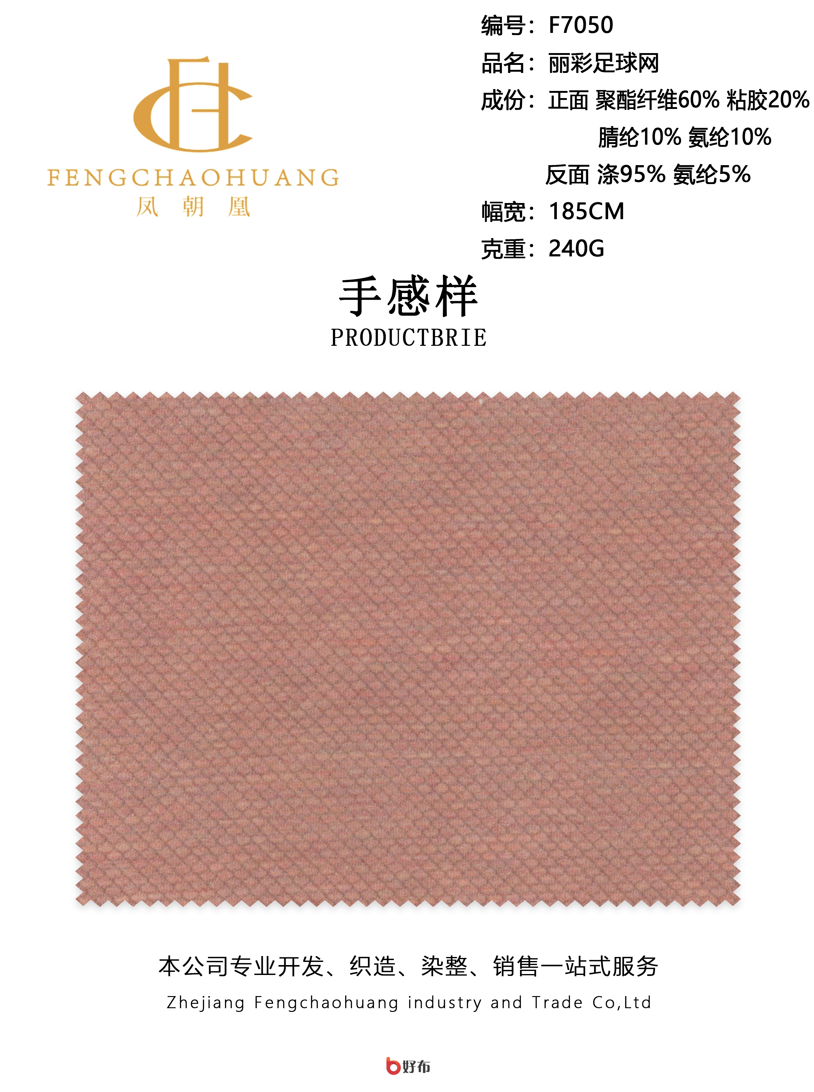 浙江凤朝凰工贸有限责任公司公司成立于2015年,注册资本1000万元人民币。集针织、染色、印花、后整理于一体,提供生产、销售、自营进出口一条龙服务,省去中间环节,源头厂家确保性价比