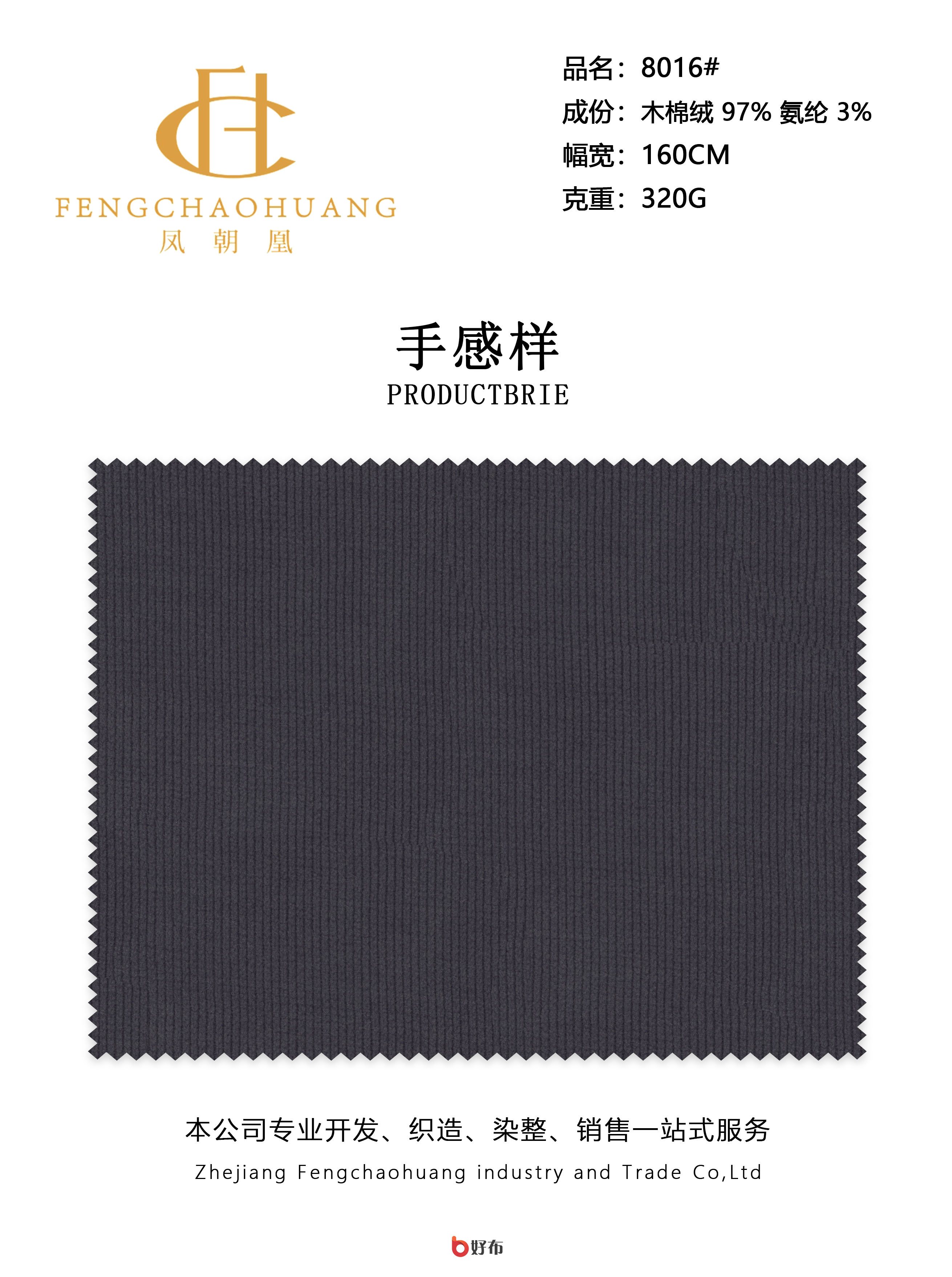 浙江凤朝凰工贸有限责任公司公司成立于2015年,注册资本1000万元人民币。集针织、染色、印花、后整理于一体,提供生产、销售、自营进出口一条龙服务,省去中间环节,源头厂家确保性价比