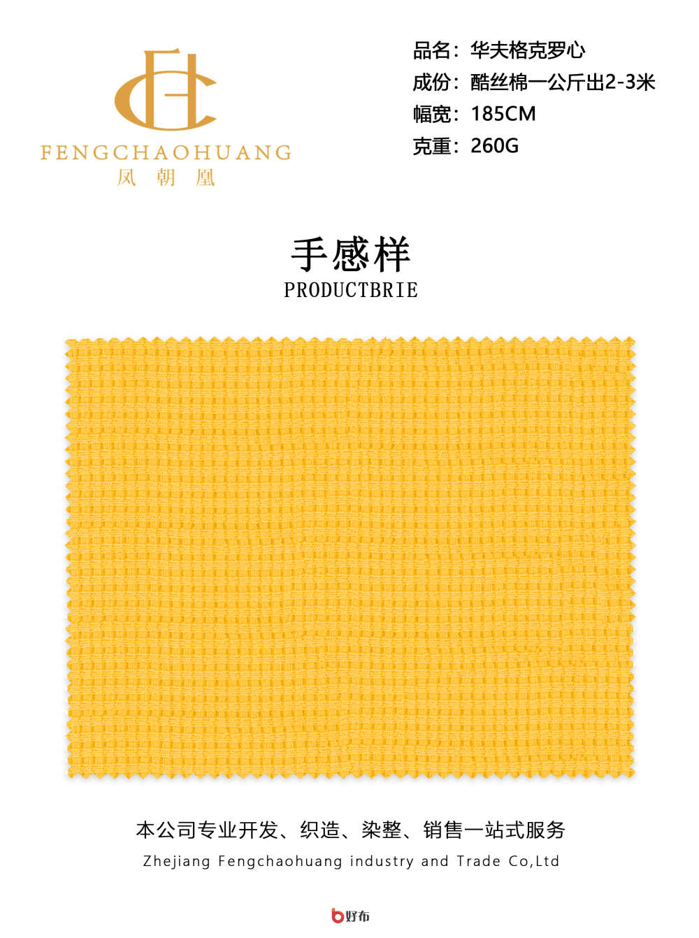 浙江凤朝凰工贸有限责任公司公司成立于2015年,注册资本1000万元人民币。集针织、染色、印花、后整理于一体,提供生产、销售、自营进出口一条龙服务,省去中间环节,源头厂家确保性价比