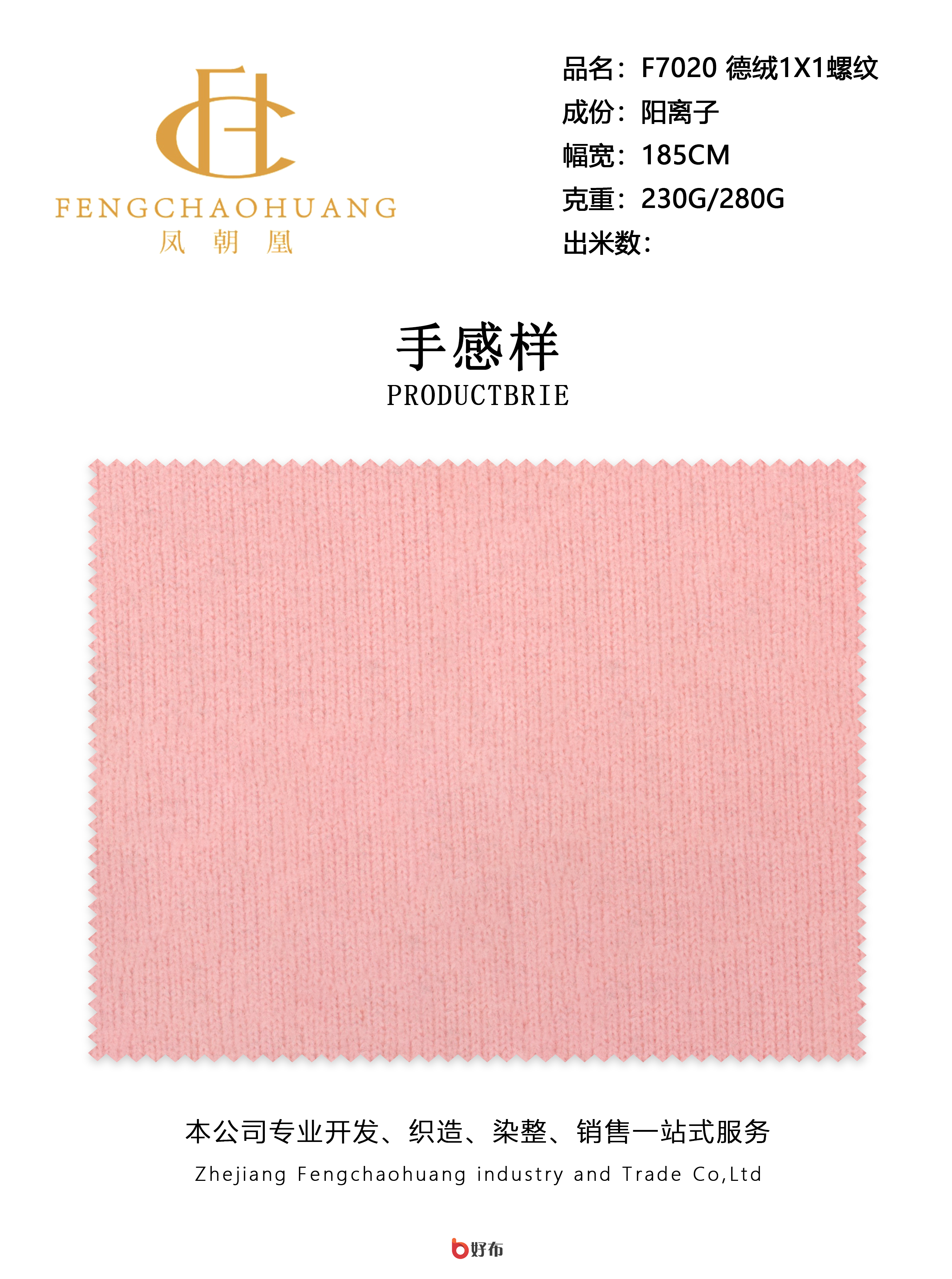 浙江凤朝凰工贸有限责任公司公司成立于2015年,注册资本1000万元人民币。集针织、染色、印花、后整理于一体,提供生产、销售、自营进出口一条龙服务,省去中间环节,源头厂家确保性价比