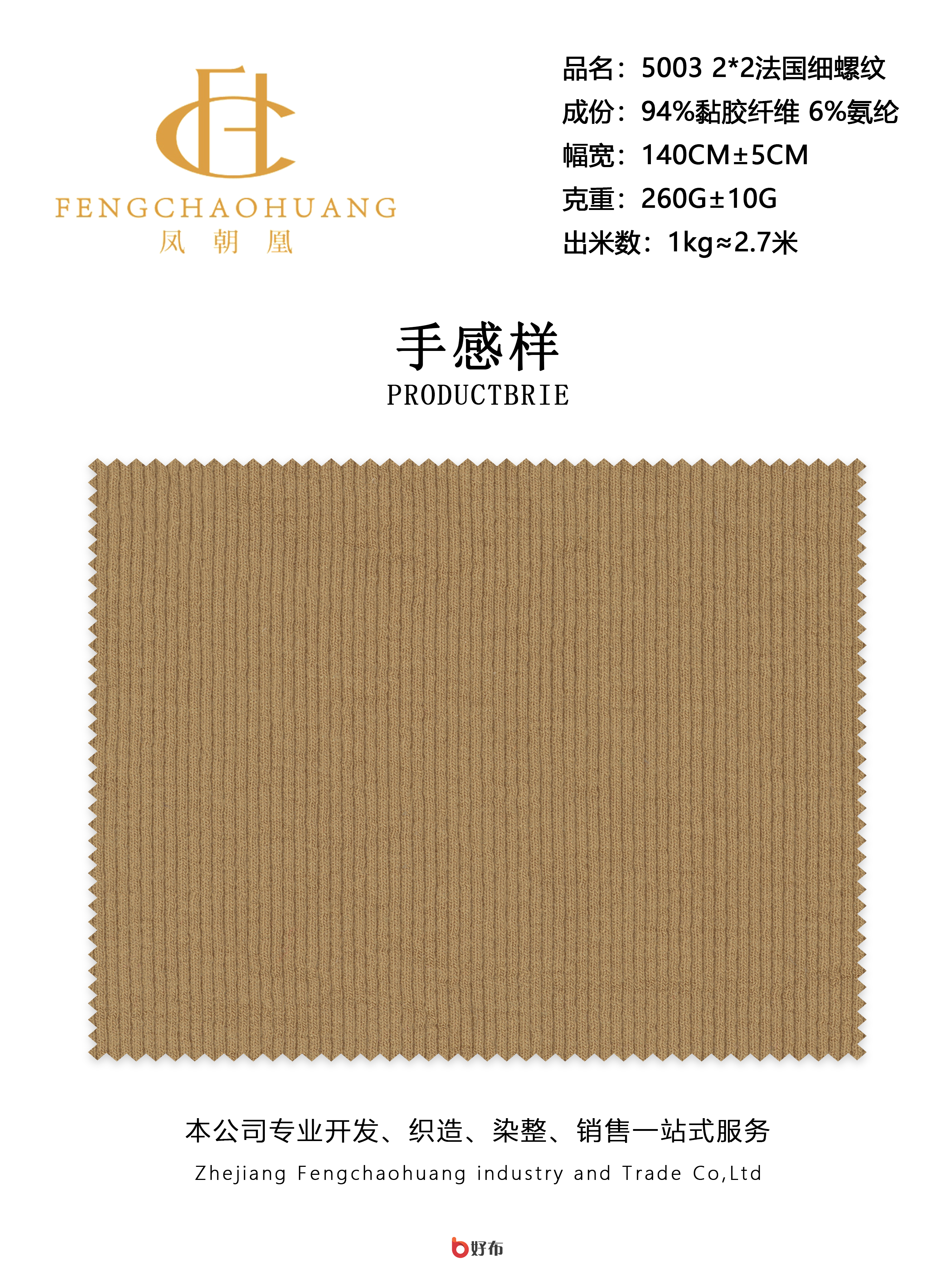 浙江凤朝凰工贸有限责任公司公司成立于2015年,注册资本1000万元人民币。集针织、染色、印花、后整理于一体,提供生产、销售、自营进出口一条龙服务,省去中间环节,源头厂家确保性价比