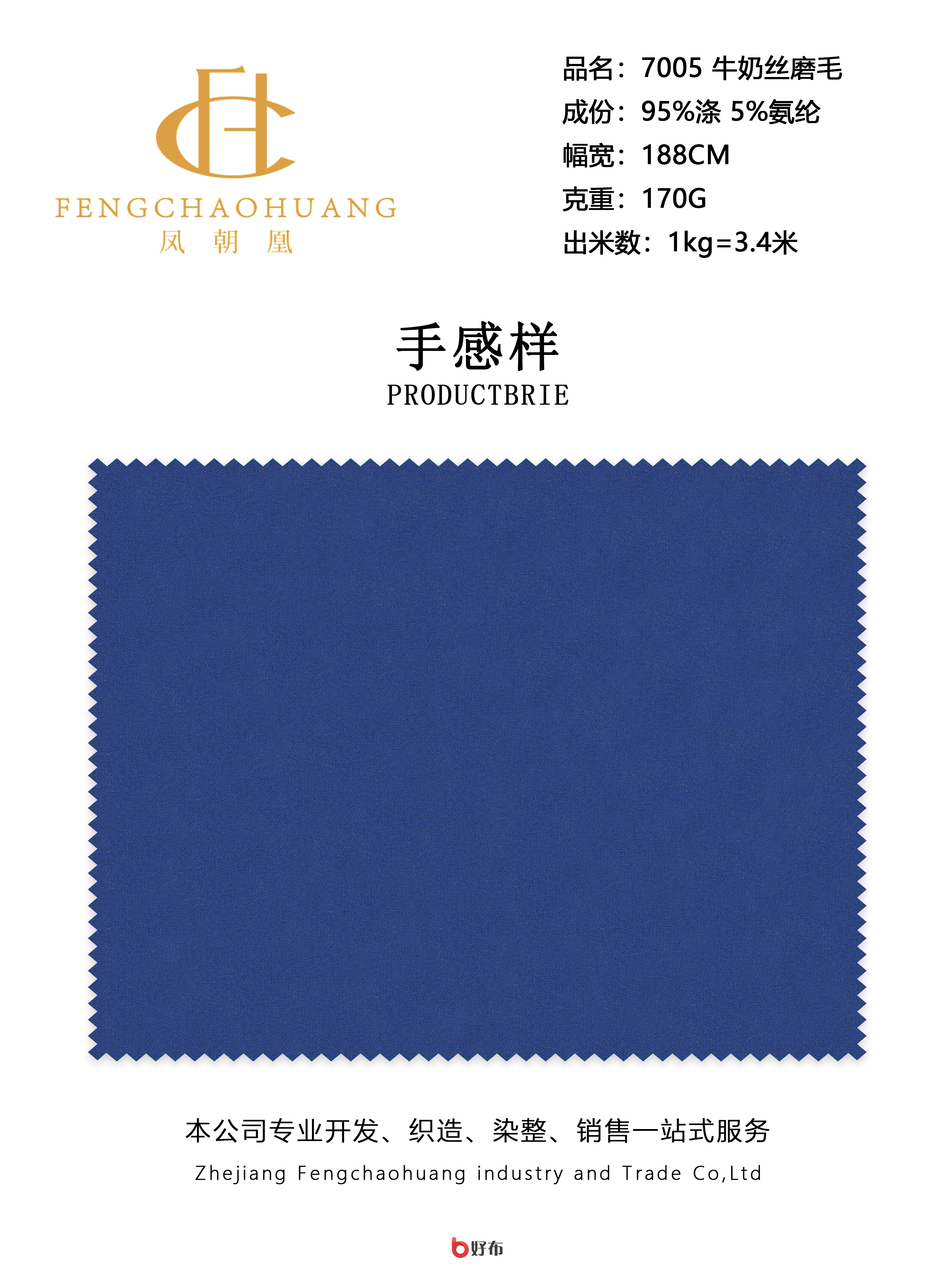 浙江凤朝凰工贸有限责任公司公司成立于2015年,注册资本1000万元人民币。集针织、染色、印花、后整理于一体,提供生产、销售、自营进出口一条龙服务,省去中间环节,源头厂家确保性价比
