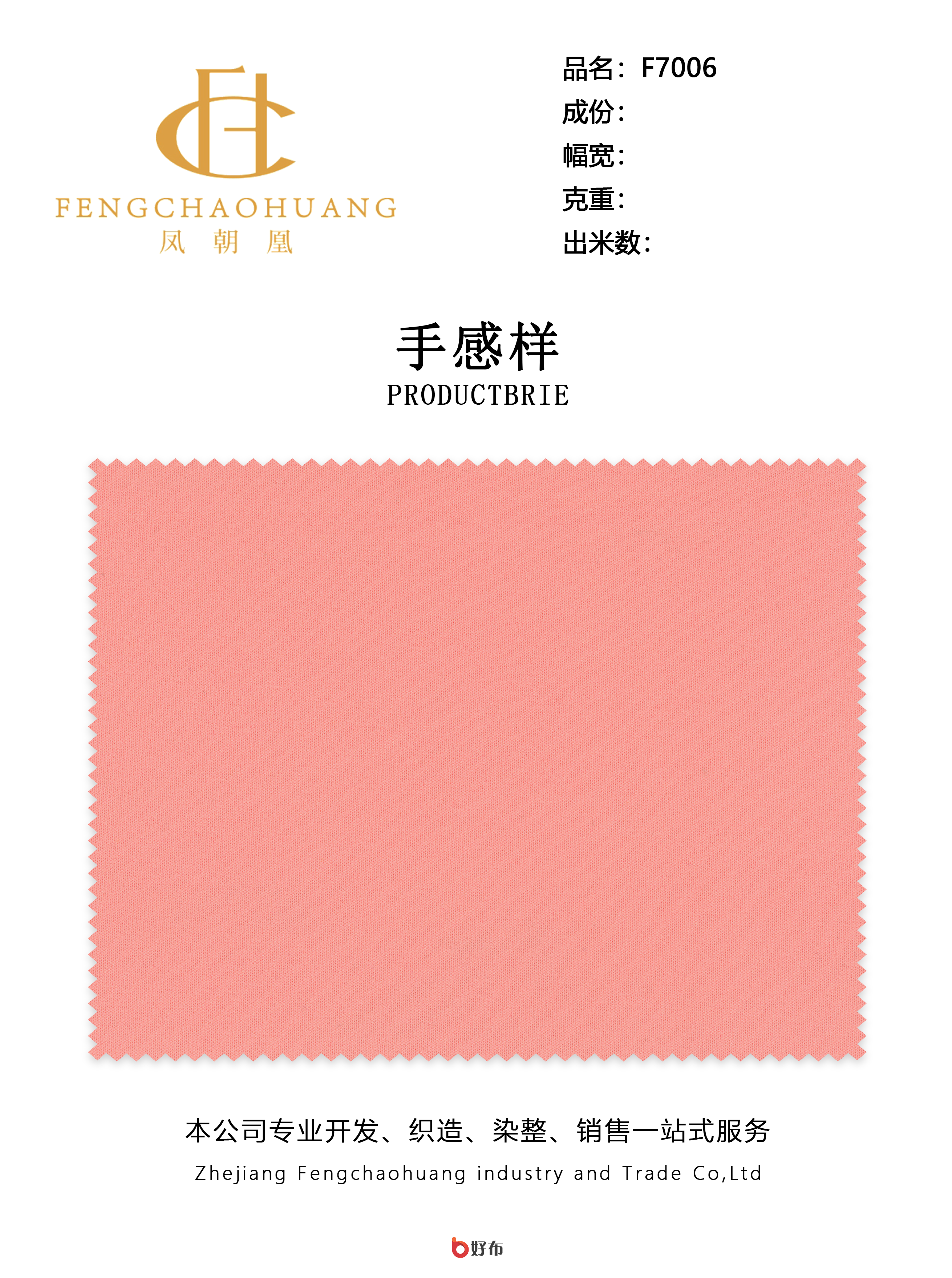 浙江凤朝凰工贸有限责任公司公司成立于2015年,注册资本1000万元人民币。集针织、染色、印花、后整理于一体,提供生产、销售、自营进出口一条龙服务,省去中间环节,源头厂家确保性价比