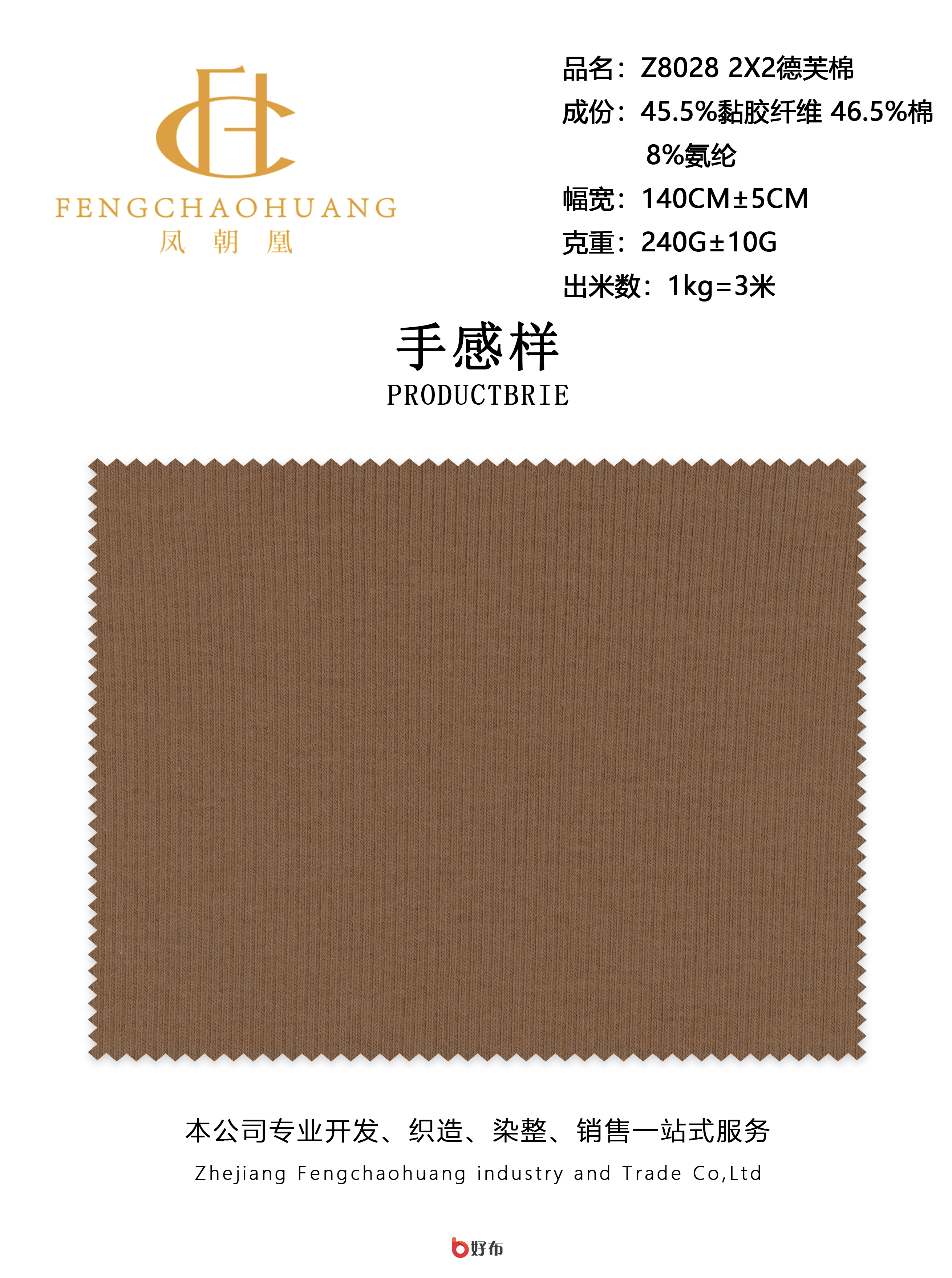 浙江凤朝凰工贸有限责任公司公司成立于2015年,注册资本1000万元人民币。集针织、染色、印花、后整理于一体,提供生产、销售、自营进出口一条龙服务,省去中间环节,源头厂家确保性价比