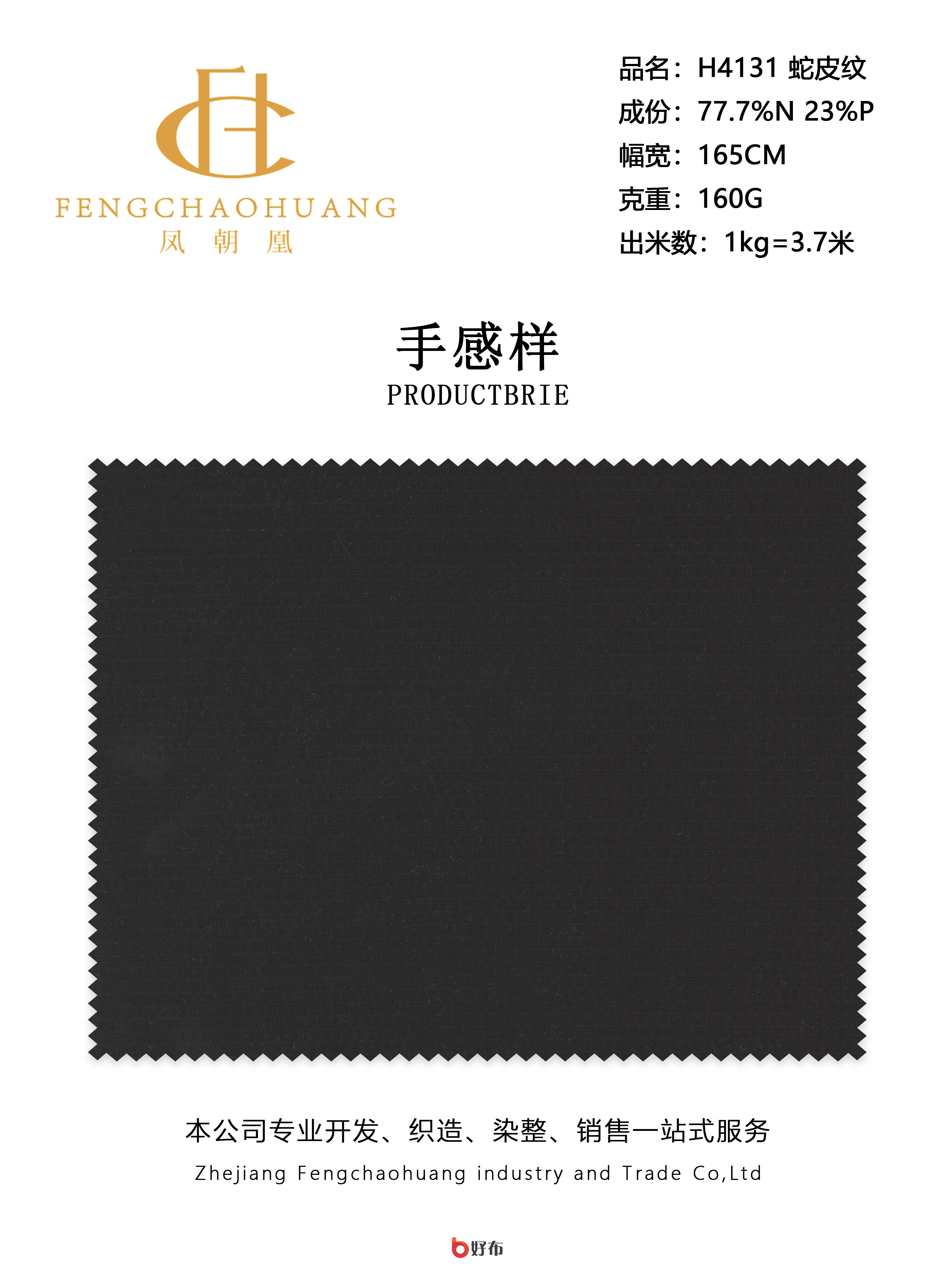 浙江凤朝凰工贸有限责任公司公司成立于2015年,注册资本1000万元人民币。集针织、染色、印花、后整理于一体,提供生产、销售、自营进出口一条龙服务,省去中间环节,源头厂家确保性价比