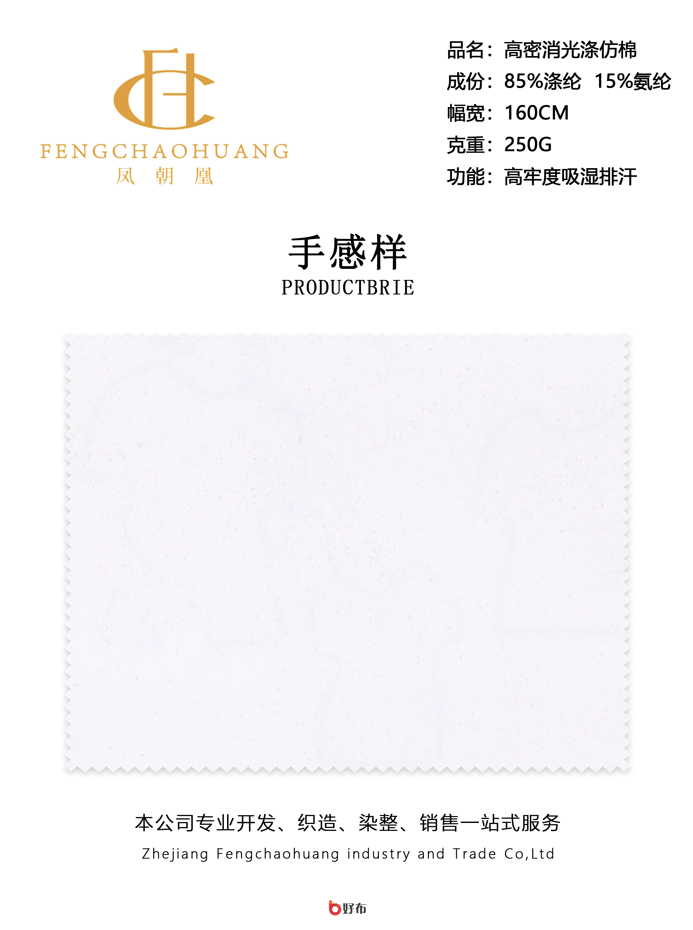 浙江凤朝凰工贸有限责任公司公司成立于2015年,注册资本1000万元人民币。集针织、染色、印花、后整理于一体,提供生产、销售、自营进出口一条龙服务,省去中间环节,源头厂家确保性价比