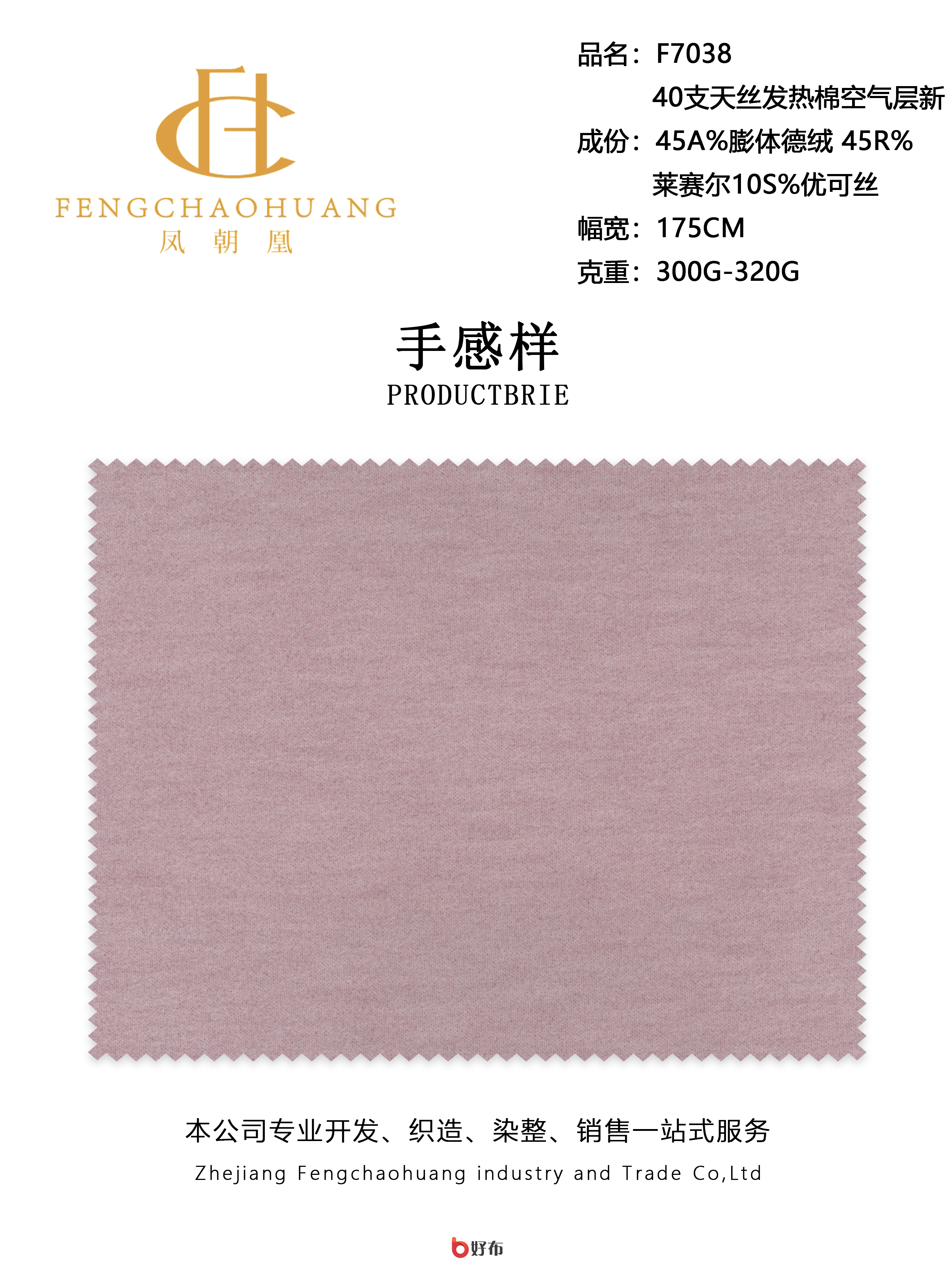 浙江凤朝凰工贸有限责任公司公司成立于2015年,注册资本1000万元人民币。集针织、染色、印花、后整理于一体,提供生产、销售、自营进出口一条龙服务,省去中间环节,源头厂家确保性价比