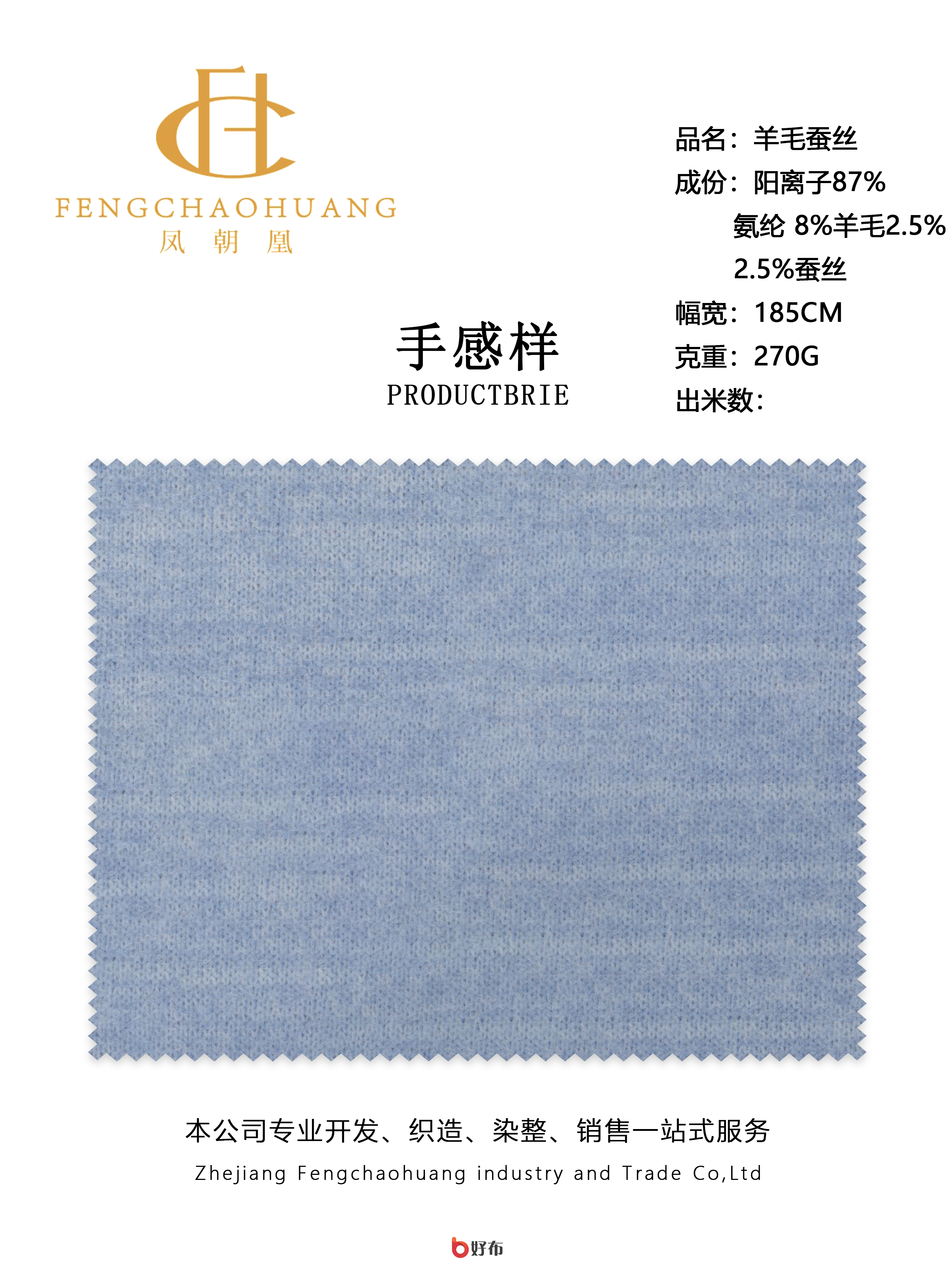 87%阳离子 8%氨 纶 2.5%羊毛 2.5%蚕丝