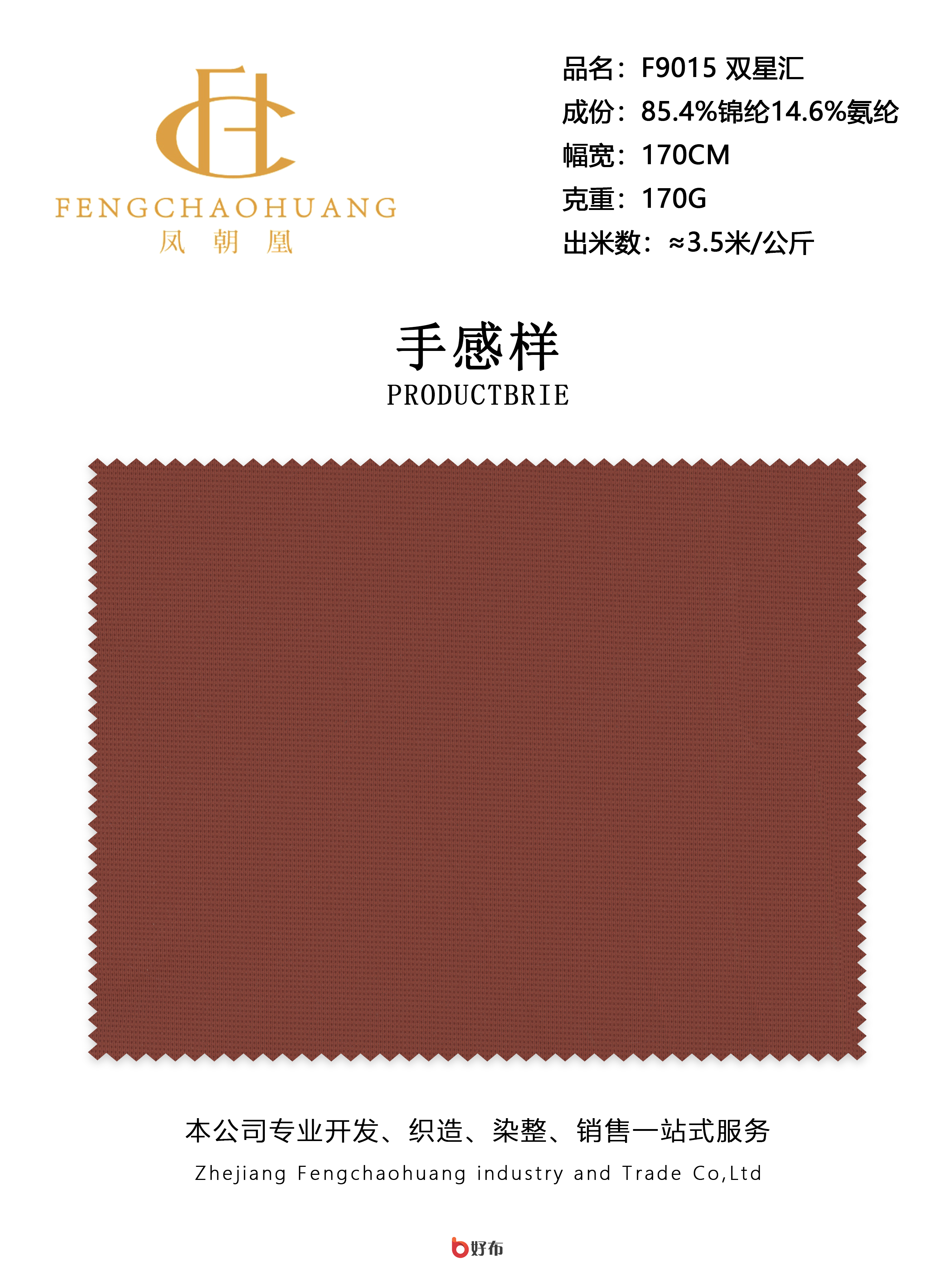 浙江凤朝凰工贸有限责任公司公司成立于2015年,注册资本1000万元人民币。集针织、染色、印花、后整理于一体,提供生产、销售、自营进出口一条龙服务,省去中间环节,源头厂家确保性价比